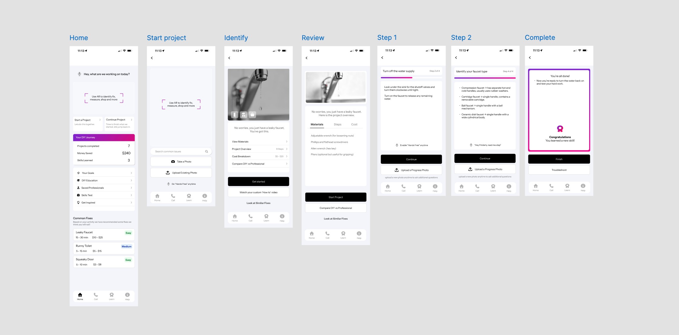 Jobs to be done: Users want a clear, supported path from problem to resolution. They need help identifying the issue, gathering the right tools and protective equipment, and understanding potential risks before getting started. With the right education delivered in an informative, approachable way, and backup support available if they get stuck, they can move through projects with confidence and resolve issues more easily.