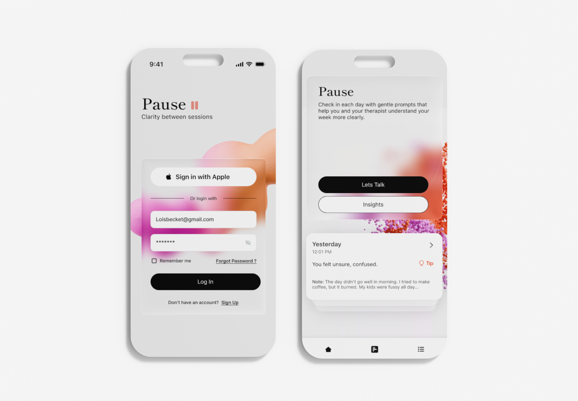Final deliverables: The final UI leverages brand colors, gradients, glass effect, and intentional iconography to create a modern, polished feel.